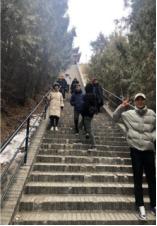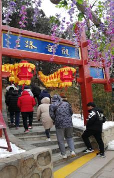 第二天早上9:00點,我們團體到達紅螺寺景區(qū),位于北京市懷柔區(qū)城北5公里的紅螺山南麓,距北京市區(qū)55公里,景區(qū)總面積800公頃,國家AAAA級旅游區(qū)。始建于東晉咸康四年(公元338)年,原名“大明寺”(明正統(tǒng)年間易名“護國資福禪寺”,因紅螺仙女的美妙的傳說,俗稱“紅螺寺”)。紅螺寺坐北朝南,依山勢而建,布局嚴謹,氣勢雄偉?,F在時節(jié)三九,北方冰天雪地,此時攀登由緩緩的山勢而上,身體慢慢散發(fā)熱量,爬到山頂已經是大汗淋漓,站在頂端俯視村莊,遠眺雁西湖畔、懷柔水庫,高矮錯落的房子......心境舒爽。