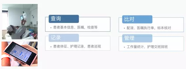醫(yī)院的護(hù)士在日常操作中,每個(gè)環(huán)節(jié)都通過(guò)移動(dòng)護(hù)士去記錄。在此過(guò)程中,移動(dòng)護(hù)士會(huì)將護(hù)士的記錄工作,加上一些系統(tǒng)限制。如護(hù)士檢查患者的輸液信息,現(xiàn)階段大多是通過(guò)人工去核對(duì),而使用移動(dòng)護(hù)士,可以直接掃碼核對(duì)。同時(shí),移動(dòng)護(hù)士會(huì)強(qiáng)制要求患者的輸液瓶簽和患者腕帶之間一一對(duì)應(yīng),這就相當(dāng)于增加了一個(gè)自動(dòng)化的識(shí)別判斷,讓更換過(guò)程又快又準(zhǔn)。