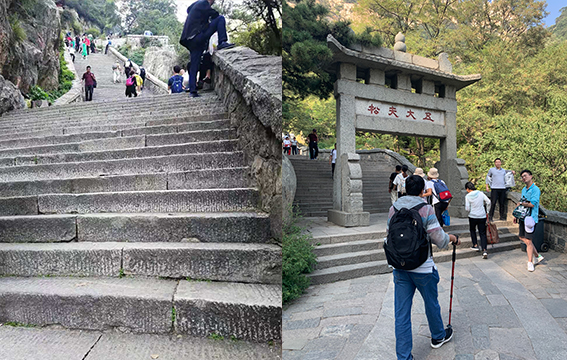 眼前泰山的巍峨,綠意蔥蔥的容貌,隨山勢而上的臺(tái)階,讓大家由衷贊嘆。大家摩拳擦掌,誓要做登頂?shù)谝粋€(gè)人,去感受那“浮在云霧中,一覽眾山小”的趣意。事實(shí)上,這個(gè)海拔1524米的天然氧吧給我們的肺的確做了一個(gè)很棒的spa,從內(nèi)到外的舒暢,從外到內(nèi)的滿足,感嘆工匠們巧奪天工的設(shè)計(jì)。