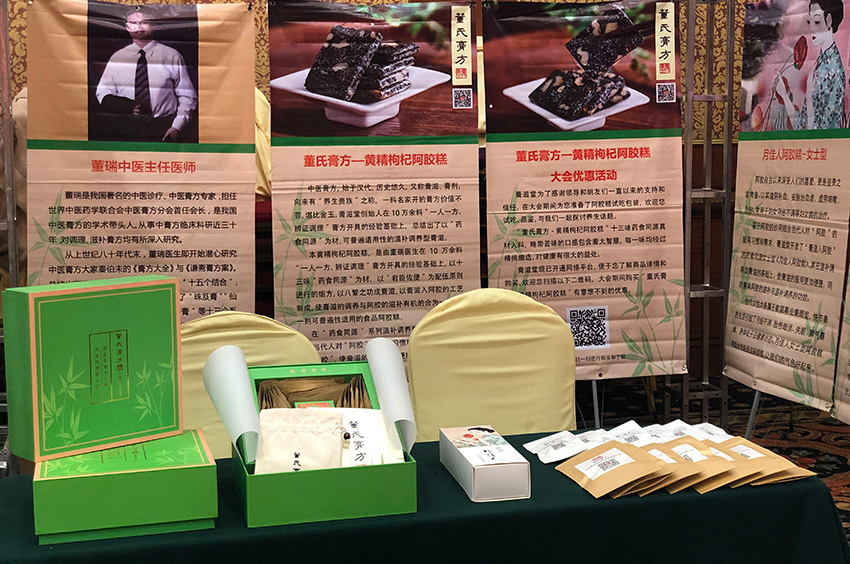膏滋堂作為本次論壇的承辦商對此次論壇進行了全方面的跟蹤和報導。并攜帶《董氏膏方-黃精枸杞阿膠糕》、《月佳人-女士型阿膠糕》兩款藥食同源的食性價值很高的阿膠糕參會。董氏膏方-黃精枸杞阿膠糕是董瑞中醫(yī)主任醫(yī)師臨床三十年得方,從上世紀80年代末,其潛心研究中醫(yī)膏方大家秦伯未的《膏方大全》與《謙齋膏方案》。總結(jié)出了膏方防治疾病與保健的“十個指導思想”和 “十五個結(jié)合”,形成了董氏中醫(yī)膏方思想體系,研發(fā)了“珠芨膏”、“仙芪扶陽膏”、“養(yǎng)顏美容膏、“延年益壽膏”“黃精枸杞阿膠糕”等30個系列膏方,積累了上萬例中醫(yī)膏方防治慢性疑難病及養(yǎng)生保健經(jīng)驗,為我國的中醫(yī)膏方慢性病防治及亞健康保健作出了貢獻。董瑞先生是我國著名的中醫(yī)膏方專家,擔任世中聯(lián)中醫(yī)膏方分會首任會長,是我國中醫(yī)膏方的學術帶頭人,積極開展中醫(yī)膏方“一帶一路”世界交流活動,主持了首屆APEC雁棲湖國際中醫(yī)膏方高峰論壇及“一帶一路”中匈雁棲湖國際中醫(yī)膏方高峰論壇,讓世界了解了中醫(yī)膏方。